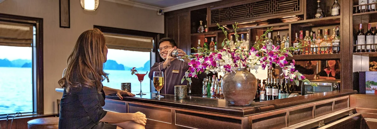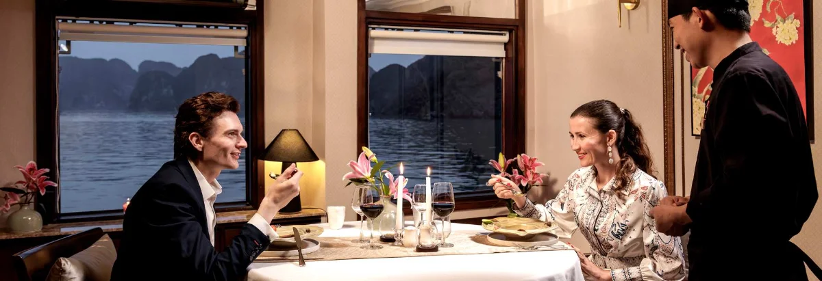 | 1:00 PM – 2:30 PM | Gourmet Lunch with a View – Four-course French-Vietnamese lunch in the intimate dining room as the ship cruises past Halong Bay’s iconic karsts. |