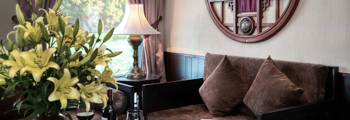 Your Halong Bay honeymoon package includes the Violet Signature Suite, one of only a few on the ship. Spanning 55 square meters, it features a king-size bed with 600-thread-count linens, a separate living area, and a large private balcony with sun loungers and a jacuzzi. The bathroom boasts a two-person rain shower, double vanities, and premium Hermès toiletries. A pillow menu offers a choice of memory foam, goose-down, or silk pillows. Your butler will draw a rose petal bath upon request – the ultimate romantic touch for your honeymoon in Halong Bay.