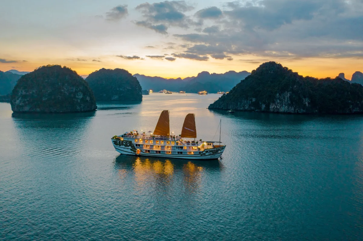 | 12:00 PM – 1:00 PM | Embarkation & Welcome Aboard – Champagne reception, butler introduction, private tour of the ship. Panoramic views of Halong Bay. |