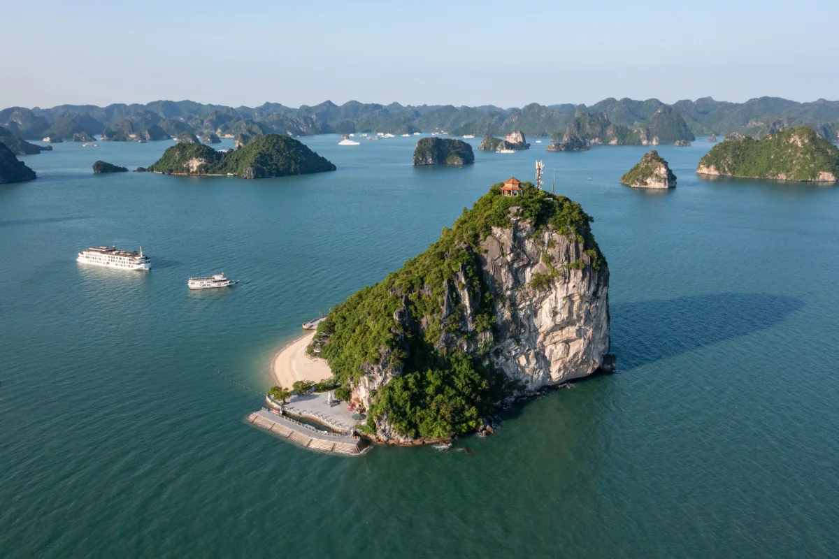| 8:00 AM – 9:30 AM | The Ethereal Cave Haven – Bamboo sampan journey through Dark & Bright Cave, emerging into a silent emerald lagoon. A truly magical moment for any Indochina Sails honeymoon. |