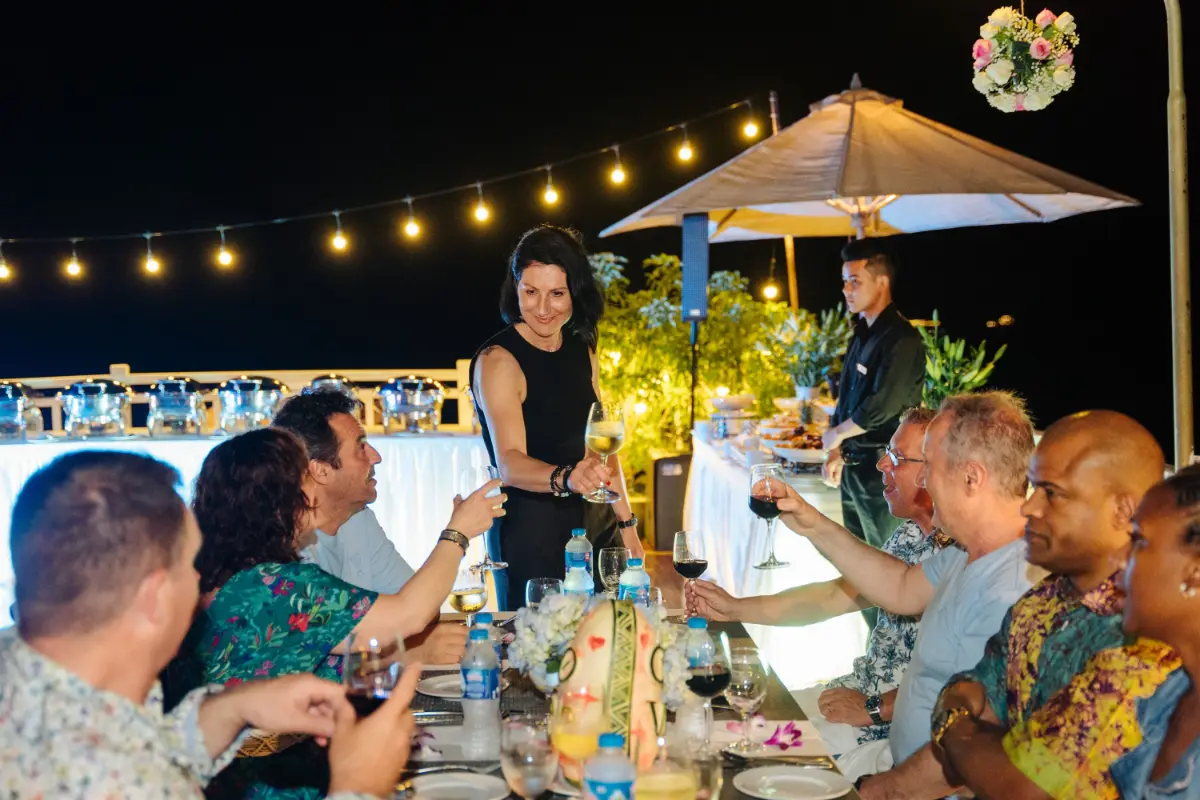 - Dress Code: “Barefoot elegance.” Daytime: light linen, swimwear, sandals. Evening: resort chic – sundresses, collared shirts, trousers. The candlelit dinner calls for something a little dressier.
